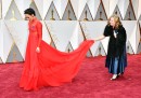 Il red carpet degli Oscar, al Dolby Theatre di Los Angeles, ha visto sfilare attrici, registi, ospiti e produttori che arrivano eleganti per la cerimonia di premiazione degli Academy Awards. Queste sono le foto della cerimonia di domenica notte, quando tutto andava ancora benissimo, prima dell’incredibile errore nell’assegnazione del premio più importante della serata. Qui ci sono invece tutti i vincitori.