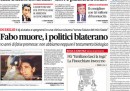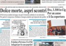 Tutti i quotidiani di oggi aprono sulla morte di Fabiano Antoniani, l’uomo conosciuto come dj Fabo cieco e tetraplegico in conseguenza di un incidente stradale che è andato in Svizzera per sottoporsi a una procedura di suicidio assistito, dopo aver chiesto inutilmente che questa pratica fosse resa possibile anche in Italia. I titoli dei giornali si concentrano anche sulle divisioni e i ritardi che hanno determinato la mancanza di una legge sul fine vita in Italia. I quotidiani sportivi presentano la semifinale di andata di coppa Italia di stasera fra Juventus e Napoli.