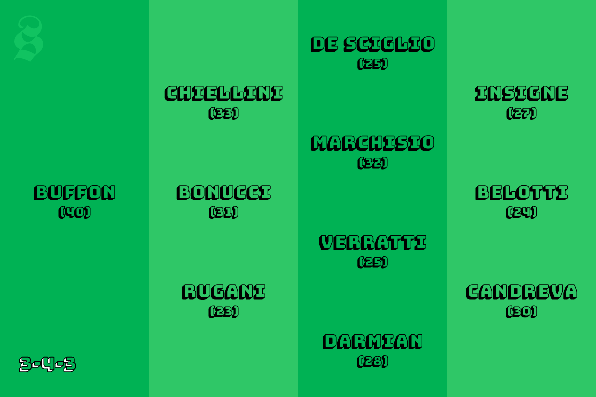 Ma in un anno e mezzo le cose possono cambiare rapidamente: alcuni giocatori potrebbero rimanere fuori dal giro dei convocati, per diversi motivi, altri invece potrebbe ritagliarsi uno spazio continuando a giocare bene nei propri club. Buffon, per esempio, potrebbe iniziare ad avere delle difficoltà a reggere l’intensità di partite in cui gli avversari calciano molto in porta; Chiellini, che per dare il meglio di sé ha bisogno di essere costantemente in tensione, da qui in avanti potrebbe subire un calo di forma, non riuscendo più a garantire la solidità del passato; De Sciglio potrebbe mancare di continuità con il Milan ed essere superato da Antonio Barreca e Davide Zappacosta del Torino, che Ventura conosce bene, così come Alessandro Florenzi potrebbe prendere il posto di Matteo Darmian a destra; Bernardeschi e Berardi – ma anche Sansone del Villarreal – potrebbero continuare a crescere in maniere costante, tanto da non poter non essere schierati titolari, o almeno alternati a Candreva e Insigne, due scelte di alto livello.