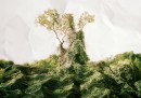 Laura Plageman modifica immagini di mari, foreste e cieli manualmente, spiegazzandole e tagliandole per farle diventare una cosa nuova