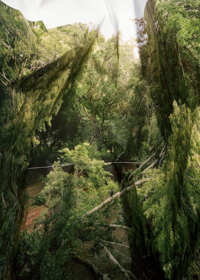 Laura Plageman modifica immagini di mari, foreste e cieli manualmente, spiegazzandole e tagliandole per farle diventare una cosa nuova