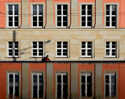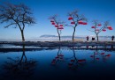 Le pozzanghere hanno un fascino particolare: c’è quella fase in cui si è piccoli e ci piace finirci dentro e quella in cui siamo grandi e cerchiamo il più possibile di evitarlo (o ci piace guardare altre persone mentre cercano di farlo). A saperle guardare, tante volte le pozzanghere riflettono ciò che sta loro intorno in un modo perfettamente simmetrico, sdoppiando il mondo in due parti uguali al punto che una volta fotografate sembrano dimensioni parallele e vien voglia di buttarsi dall’altra parte e vedere come è.