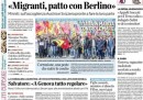 Molte notizie diverse sono in apertura sui quotidiani di oggi: il divieto deciso da Stati Uniti e Regno Unito di portare in cabina computer e tablet sui voli provenienti da paesi del Medio Oriente e del Nord Africa per paura di attentati, il vertice di Roma nell’anniversario della fondazione dell’Unione Europea e la paura di incidenti durante le manifestazioni previste per sabato, l’accoglienza dei migranti, sulla quale la Stampa intervista il ministro dell’Interno Minniti, la manifestazione di Locri nel giorno del ricordo delle vittime della mafia, e i dati dell’ISTAT sul lavoro nelle famiglie italiane.