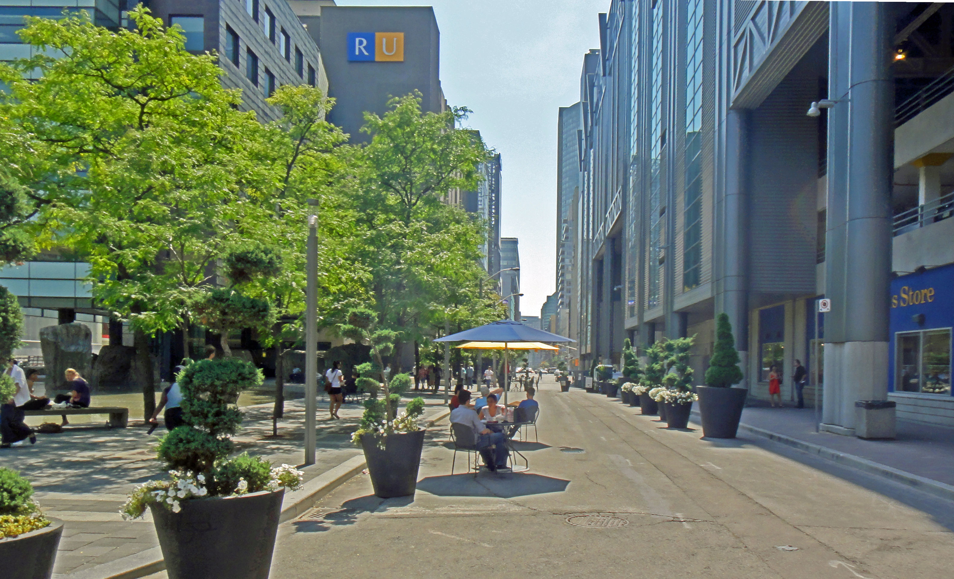 L’esempio citato più spesso di una progettazione di successo di sistemi di sicurezza, ma che non creano preoccupazioni per chi li vede, è quello del distretto finanziario di New York realizzato dallo studio di architetti e progettisti Rogers Partners Architects+Urban Designers. Al posto della classiche e minacciose barriere di metallo per delimitare le vie pedonali, i progettisti hanno realizzato blocchi con forme irregolari che si integrano meglio con il contesto urbano e che soprattutto possono essere usati dai pedoni come panchine e punti di appoggio.