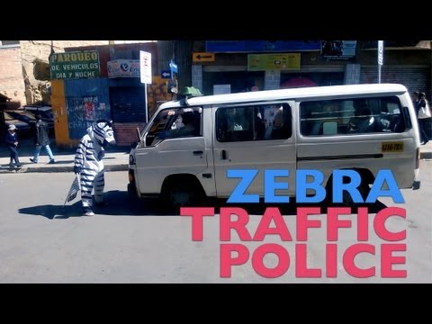 La Paz è una città che ha visto aumentare molto la sua popolazione negli ultimi anni, per via di un trasferimento di massa dalle campagne: e con gli abitanti sono aumentati anche il traffico e gli incidenti stradali. Il programma cominciò nel 2001 con 24 zebre: all’inizio si provò a fare indossare a due persone un costume con quattro zampe, ma la cosa non funzionò per motivi piuttosto ovvi. Oggi le zebre, su due piedi, sono 265 solo a La Paz – ma ce ne sono anche in altre città – che ballano e gesticolano in decine di incroci e punti delicati della viabilità della città. Sono buffe e una delle conseguenze del loro essere buffe è che le persone quando le vedono rallentano e fanno meno infrazioni.