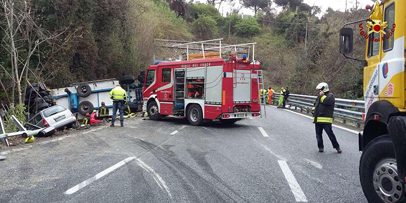 Due operai sono morti e cinque sono rimasti ferite dopo che un tir spagnolo, con a bordo due autisti romeni, è finito in cui stavano lavorando, sulla A10, tra Albisola e Celle Ligure. Ansa ha scritto che uno dei cinque operai feriti ha subito l’amputazione di una gamba e che sbandando il tir – con targa spagnola – «ha spinto fuori strada anche un’auto con a bordo due persone di Borghetto Santo Spirito (Savona) rimaste lievemente ferite». L’incidente è avvenuto in un tratto a tre corsie e nel pomeriggio è stato chiuso un tratto d’autostrada – per chi è diretto a Genova c’è l’uscita obbligatoria a Savona; sono stati chiusi anche il casello di Albisola in entrata per Genova e la rampa di immissione della A6 verso Genova. L’autista che stava guidando il tir è indagato per omicidio colposo ed è risultato negativo ai test a cui è stato sottoposto per verificare se avesse bevuto o fatto uso di sostanze non compatibili con la guida.