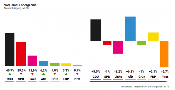Se fosse arrivata leggermente dietro la sua avversaria della CDU, la candidata della SPD avrebbe potuto infine sperare di governare il Land formando una coalizione con il partito di estrema sinistra Die Linke, a condizione però che quest’ultimo avesse ottenuto un punteggio sufficiente per formare una coalizione con i socialdemocratici. L’ipotesi si è dimostrata impossibile: Die Linke, secondo i risultati ancora parziali, avrebbe ottenuto il 13 per cento dei voti, tre punti in meno rispetto al 2012. A sei mesi dalle elezioni politiche, la formazione di una coalizione “rossa” in Saarland guidata da SPD e Die Linke sarebbe stata considerata come un possibile segno di cambiamento anche a livello nazionale.