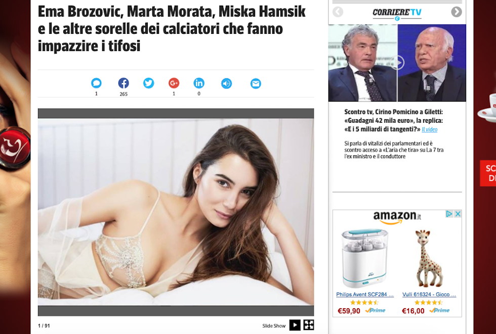 “Ema Brozovic, Marta Morata, Miska Hamsik e le altre sorelle dei calciatori che fanno impazzire i tifosi”. Storia vera.
