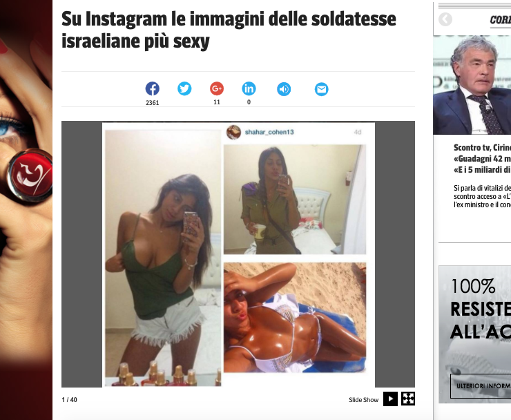 “Su Instagram le immagini delle soldatesse israeliane più sexy”.