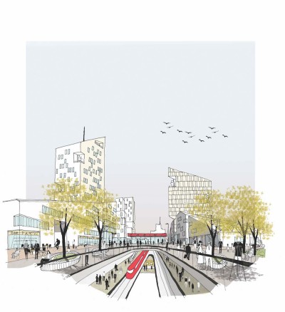 Edifici multifunzionali come landmark iconici sopra ed intorno agli scali trasformeranno questi hub della mobilità in luoghi vibranti dove stare, lavorare e vivere. Con l’aggiunta di parchi, passerelle verdi e acqua, gli scali diventeranno nuclei circondati da un paesaggio lussureggiante e riconoscibili lungo i percorsi.