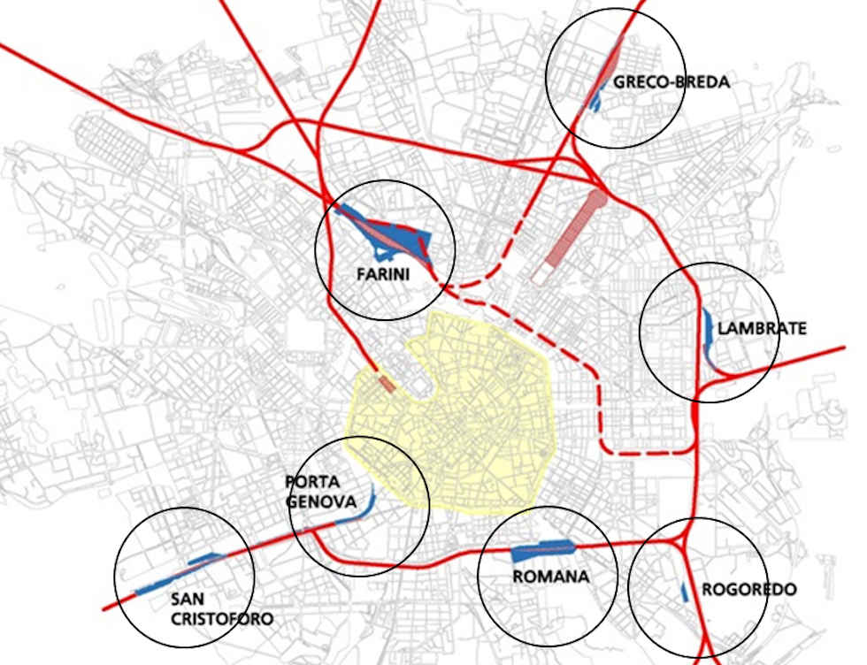 2. Trasformare l’area intorno agli scali in una zona chiusa al traffico urbano, influenzando la città nel suo complesso