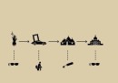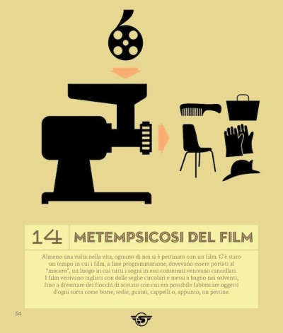 Cinemology è il nuovo progetto che fa parte di una serie di libri basati sul meccanismo della sintesi grafica: il modo per spiegare con un paio di semplici ma efficacissimi disegnetti cose che altrimenti richiederebbero molte parole. I precedenti sono Shortology, Filmology e Proverbiology: il primo era dedicato a fatti storici e personaggi famosi, il secondo a illustrazioni minimali che riassumevano le trame dei film, il terzo a proverbi e modi di dire (anche questi spiegati facili e veloci, con i disegni). Cinemology è sia un libro, in vendita dal 15 maggio, che una mostra, che si potrà visitare dal 26 aprile al 25 giugno allo Spazio Oberdan di Milano. È dedicato alla storia del cinema e alle sue curiosità. Il libro è stato realizzato da Matteo Pavesi della Fondazione Cineteca Italiana (che quest’anno compie 70 anni) e da Matteo Civaschi, già autore di Shortology. La prefazione è del critico cinematografico Gianni Canova. Queste sono alcune delle immagini di Cinemology.