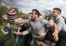 È periodo di ponti e feste, non ci farete caso se le foto sportive arrivano oggi, al posto della consueta domenica. C’è Nadal che esulta per la sua decima vittoria sulla terra rossa del Monte Carlo Rolex Masters, ma ci sono anche le facce serissime dei partecipanti al primo “Iron Man” organizzato in Perù. Il premio per lo sport più originale della settimana va a mani basse alla gara di “bottiglie calciate”, che non è un’invenzione recente: è una tradizione che in alcune cittadine del Regno Unito si mantiene dal Diciottesimo secolo. Lo scopo del gioco è quello di far arrivare la bottiglia (che in realtà è una piccola botte) nella propria città, partendo da un punto equidistante dai due centri cittadini e passando attraverso un ruscello che delimita il confine tra un comune e l’altro. Il vincitore viene stabilito al meglio di tre lanci di botte.