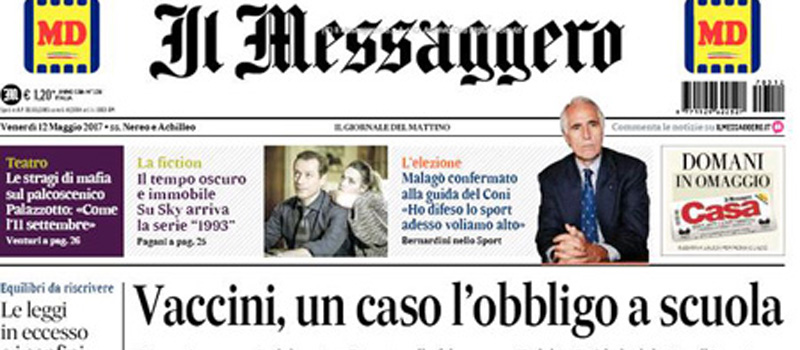 La maggior parte dei quotidiani di oggi dedica l’apertura alla questione dell’obbligo di vaccinazione per i bambini della scuola dell’obbligo, prima annunciata ieri dal ministro della Salute Lorenzin come contenuto di un decreto all’esame del Consiglio dei ministri di oggi, poi rinviata alla settimana prossima dopo le perplessità espresse dal ministro dell’Istruzione Fedeli per tutelare il diritto all’istruzione per tutti. La Stampa, il Fatto e la Verità si occupano ancora di Banca Etruria e del sottosegretario Boschi dopo la pubblicazione del libro di Ferruccio De Bortoli che accusa Boschi di aver fatto pressioni per il salvataggio della banca.