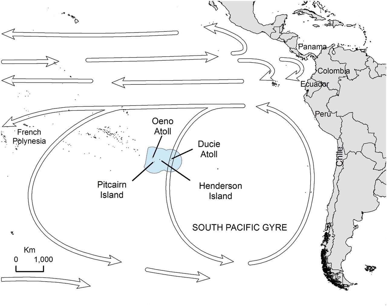 L’isola di Henderson, nel mezzo dell’oceano Pacifico meridionale, è uno dei posti più remoti della Terra: è disabitata, eppure è il posto con la più alta densità di rifiuti di plastica registrata. L’immondizia ha invaso le sue spiagge dopo essere stata spostata per migliaia di chilometri dalle correnti oceaniche, generate soprattutto dal “vortice del Pacifico meridionale”, una sorta di grande nastro trasportatore naturale dei rifiuti generati dall’attività umana. I ricercatori stimano che sulle coste di Henderson arrivino quotidianamente circa 3.500 frammenti e detriti di plastica, facendo aumentare di continuo la quantità di inquinamento sulla piccola isola, che ha una superficie di circa 36 chilometri quadrati.