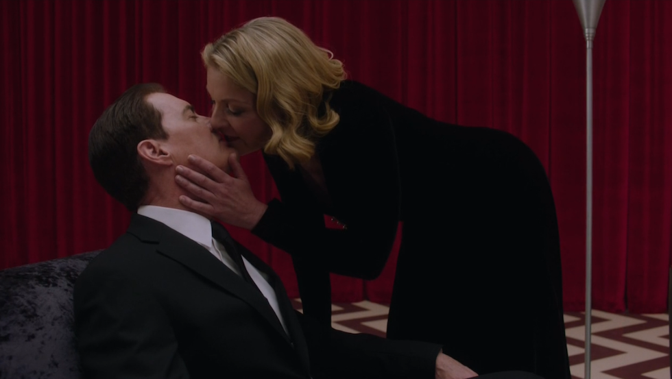 Nella vecchia serie le scene nella Loggia Nera – la stanza col pavimento seghettato e le tende rosse – non erano moltissime, e divennero iconiche. Nella nuova stagione ne abbiamo già viste diverse: riguardano tutte l’originale Dale Cooper, intrappolato lì da quando BOB ha preso il suo posto, e che è ancora vestito come allora. Non sappiamo cos’abbia fatto in questi 26 anni, ma sappiamo che sta per tornare nel mondo: glielo comunica Laura Palmer, nello stesso modo in cui gli apparve per la prima volta nella vecchia serie, sussurrandogli nell’orecchio dopo averlo baciato.