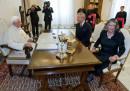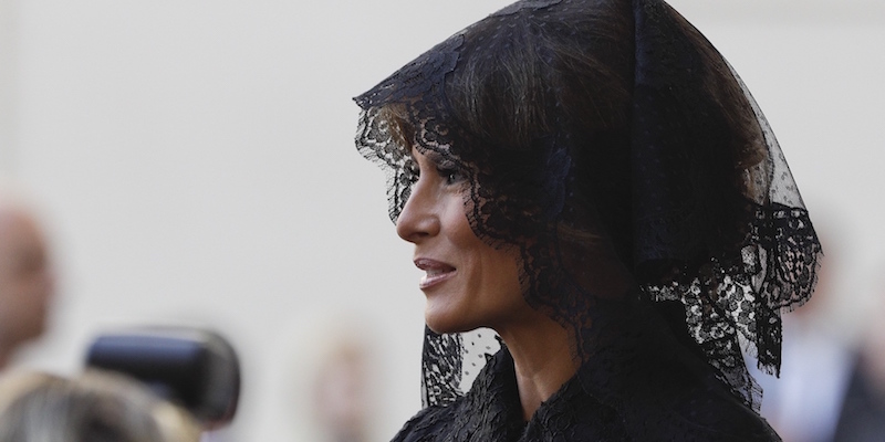 Melania e Ivanka Trump non erano vestite a lutto durante la visita a papa Francesco avvenuta il 24 maggio: portavano abiti neri e accollati e la veletta in testa perché sarebbe l’abbigliamento previsto dal cerimoniale delle udienze private con il papa. Secondo il protocollo del Vaticano, infatti, quando vengono ricevute dal papa le donne dovrebbero indossare abiti formali, accollati, lunghi fin sotto al ginocchio e con le maniche lunghe, e portare un velo nero sulla testa. C’è un’eccezione che riguarda le regnanti cattoliche, cioè al momento la regina Letizia di Spagna e l’ex regina Sofia di Spagna, la regina Mathilde del Belgio e l’ex regina Paola del Belgio, la granduchessa Maria Teresa del Lussemburgo: regine e principesse devono vestirsi allo stesso modo, ma in bianco invece che in nero, e questa regola è nota come “privilegio del bianco”. Non sarebbe concesso alla principessa Charlène di Monaco, che però ha indossato un abito bianco corto, con veletta bianca, quando è stata ricevuta dal papa nel 2013: non sono, insomma, indicazioni tassative.