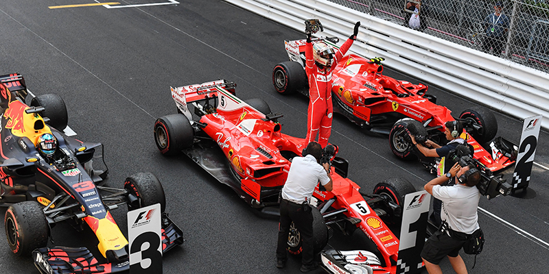 Sebastian Vettel, pilota tedesco della Ferrari, ha vinto il Gran Premio di Formula 1 di Monaco; al secondo posto è arrivato il suo compagno di scuderia, il finlandese Kimi Raikkonen. Al terzo posto è arrivato Daniel Ricciardo della Red Bull. Lewis Hamilton della Mercedes è arrivato settimo, dopo essere partito dalla 13ª posizione. È stata una grande giornata per la Ferrari: l’ultima vittoria di un pilota Ferrari a Monaco era stata nel 2001, quando davanti a tutti arrivò Michael Schumacher. Anche quell’anno fu, come si dice, “doppietta Ferrari”: al secondo posto arrivò infatti il brasiliano Rubens Barrichello. A proposito di doppiette, era anche da un bel po’ di tempo che la Ferrari non ne faceva una: l’ultimo Gran Premio con due Ferrari al primo e al secondo posto fu quello di Germania nel 2010, quando Fernando Alonso vinse davanti a Felipe Massa.