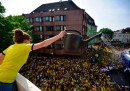 Questa domenica di sport si farà ricordare per la gran gara delle Ferrari al Gran Premio di Monaco (sono arrivate prima e seconda, e non succedeva da anni), per l’ultima partita di Francesco Totti con la Roma e per il centesimo Giro d’Italia, finito con una combattuta cronometro. In questa raccolta trovate insieme foto di grandi eventi – ce ne sono una del Giro d’Italia, una del Gran Premio di Monaco e una dei Mondiali di surf – a eventi un più piccoli ma ugualmente fotogenici. Tra le solite foto di sportivi che saltano, nuotano, festeggiano, veleggiano e si disperano per un gol sbagliato, ce n’è anche una di due uomini partecipano alla gara tradizionale di kazaka, che consiste nell’afferrare al volo delle pecore andando a cavallo, in Kazakistan.