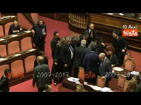Dibattito in Parlamento sullo ius soli. Ferito numero uno: il ministro dell’Istruzione, Valeria Fedeli, che durante un assalto dei senatori leghisti ai banchi del governo all’aula di Palazzo Madama è caduta ed è stata medicata in infermeria con cerotti e antidolorifici, ma ha rassicurato tutti via Twitter. Ferito numero due: Gianmarco Centinaio, capogruppo della Lega, che nel corso della suddetta rissa è stato ferito a una mano da ben sette commessi del Senato, ed è stato medicato alla buvette con del ghiaccio provvidenzialmente sottratto al Campari.