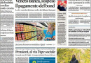 Ci sono notizie diverse in apertura sui quotidiani di oggi: alcuni si occupano dei disagi provocati ieri dallo sciopero dei trasporti in molte città, il Corriere della Sera e Avvenire ricordano l’ex cancelliere tedesco Helmut Kohl, morto ieri a 87 anni, la Stampa apre sulla mancanza di fondi per la manutenzione di strade e scuole affidata alle Province, il Giornale si preoccupa per la nuova legge sulla cittadinanza, il Manifesto segue la manifestazione della CGIL di oggi a Roma contro i voucher, e i giornali sportivi titolano sempre sul portiere del Milan Donnarumma e sulle sue possibili destinazioni, ipotizzando un interesse della Juventus.