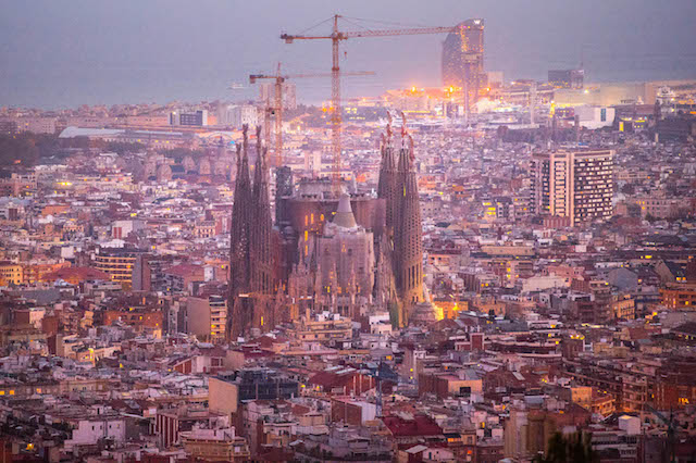 La famosa basilica cattolica di Barcellona, che dovrebbe essere terminata nel 2026. La costruzione, su progetto di Antoni Gaudí, iniziò nel 1883. Gaudí ci lavorò dal 1883 fino alla sua morte: negli ultimi 15 anni di vita decise di non accettare altri progetti, dedicandosi solo alla Sagrada Familia. Anche se non è ancora conclusa, la chiesa è stata consacrata da papa Benedetto XVI nel novembre 2010. È fatta in stile liberty e neogotico e anche se ora è nel centro di Barcellona, circondata da case, un secolo fa era piuttosto fuori città.