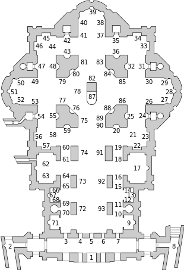 Che sta nella piazza a cui dà il nome. Iniziarono a costruirlo nel 1386 e – momento-libro-di-storia-dell’arte – ha una pianta a croce latina, con piedicroce (più o meno la parte in cui stanno i fedeli) a cinque navate. Gli stili, conseguenza dei vari lavori fatti nel tempo, sono gotico, neoclassico e neogotico.