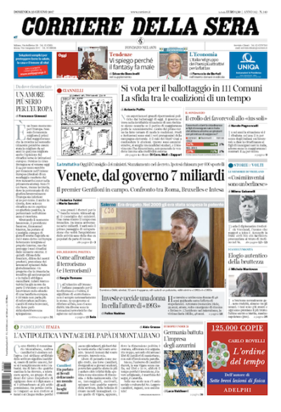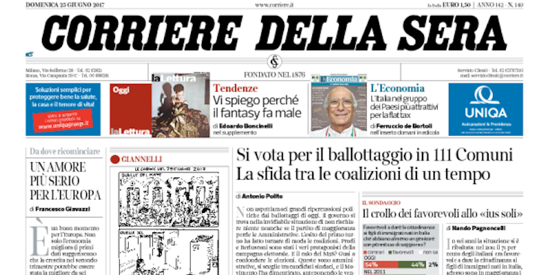 Le prime pagine di domenica 25 giugno 2017
