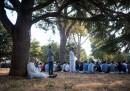 Ieri 25 giugno è terminato il Ramadan, il mese sacro per i musulmani, durante il quale praticano il digiuno dall’alba al tramonto: la sua fine è celebrata con l’Eid al-Fitr (Eid in arabo significa “festa” e Fitr, “fine del digiuno”), una delle feste più importanti della religione islamica. Per l’occasione migliaia di musulmani in tutto il mondo si sono riuniti per pregare, mangiare e stare piacevolmente insieme. Solitamente i festeggiamenti durano due o tre giorni e non iniziano nello stesso momento in tutti i paesi: il mese di Ramadan finisce infatti nel momento in cui appare la luna nuova e, mentre alcuni posti si affidano ai calcoli astronomici, altri si rifanno alla tradizione e all’avvistamento della prima luna, decretato dall’imam a occhio nudo. In ogni caso tra ieri e oggi sono arrivate tantissime fotografie da tutto il mondo che mostrano gente vestita a festa, grandi raduni di preghiera e bambini felici con i loro palloncini.