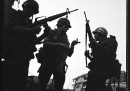 Durante le riprese di Full Metal Jacket, uno dei film di guerra più famosi di sempre, diretto da Stanley Kubrick, l’attore Matthew Modine ha scattato diverse foto sul set: sono belle e degne di nota perché raccontano un pezzo di storia e retroscena di un film famosissimo, dal punto di vista del suo attore principale. Modine interpretava infatti il soldato Joker, il protagonista, e durante i quasi due anni di riprese ha girato per il set con la sua Rolleiflex. Il film uscì nel 1987 e in occasione del trentesimo anniversario le foto di Modine sono state messe all’asta: una parte del ricavato sarà donato alla Purple Heart Foundation, un’associazione che aiuta i reduci di guerra statunitensi e le loro famiglie. Fino all’11 luglio si può partecipare all’asta online sul sito di Paddle8, ma le foto costano almeno 2mila dollari l’una (più di 1.700 euro).