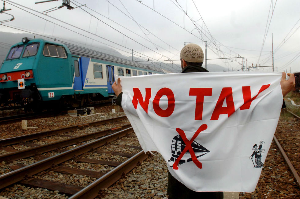 Un manifestante No Tav nella stazione di Bussoleno, in Val di Susa (AP Photo/Massimo Pinca)