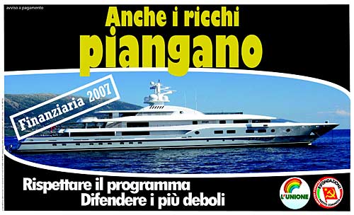 “Los ricos también lloran”, “Anche i ricchi piangono”, è una telenovela messicana andata in onda in Italia per la prima volta nel corso degli anni Ottanta, ottenendo un enorme successo. Alle elezioni del 2006, dopo cinque anni di governo Berlusconi, Rifondazione Comunista, il più grande partito della sinistra radicale italiana, fu convinto a entrare nell’Unione, la grande alleanza anti-berlusconiana che comprendeva più di una dozzina di partiti diversi, e poi a sostenere il governo Prodi. Col passare dei mesi dentro Rifondazione molti cominciarono ad agitarsi e chiedere misure drastiche, invece che continui compromessi con gli alleati della coalizione. Mentre si discuteva la legge finanziaria, allora, il partito decise di riprendere il titolo della telenovela arrivata in Italia un trentennio prima, trasformandolo in un auspicio.