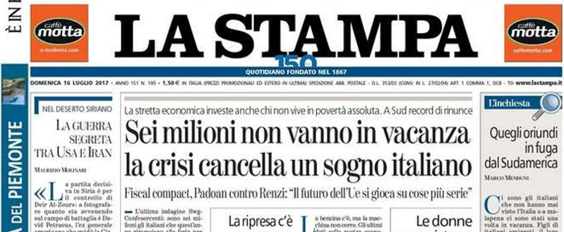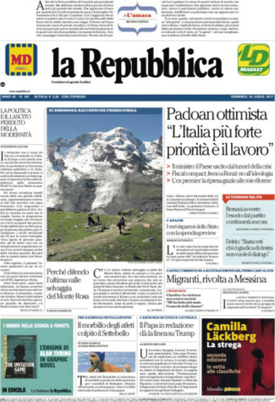 Le prime pagine di domenica 16 luglio 2017