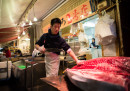 Il mercato del pesce di Tokyo è il più grande e famoso del mondo, considerato una vera istituzione e visitato da decine di migliaia di turisti ogni anno. Ci sono 671 venditori autorizzati, distribuiti su una superficie di 23 ettari, che commerciano oltre 500 tipi di pesci, crostacei e molluschi, per un totale di 700mila tonnellate all’anno, e 17 milioni di dollari al giorno. René Redzepi, lo chef del Noma di Copenhagen, lo ha definito una delle «sette meraviglie gastronomiche del mondo». Il mercato di Tsukiji è sempre stato una specie di luogo sacro per i ristoratori giapponesi, che ci vanno ogni mattina per scegliere quelli che sono probabilmente i migliori tagli di pesce al mondo, che diventano nella maggior parte dei casi il migliore sushi del mondo. Negli ultimi anni, con la grandissima diffusione del sushi nel mondo e per via di una generale maggiore attenzione al cibo e alla sua provenienza, la fama del mercato di Tsukiji si è estesa anche all’estero, trasformandolo secondo qualcuno in una sorta di parco a tema. La parte esterna, dove ci sono banchi di verdure e cibo di strada, si è espansa in modo da accogliere e soddisfare i turisti, che possono accedere al vero mercato del pesce soltanto in un orario preciso. Su Tsukiji e i suoi venditori è stato anche fatto un recente documentario.