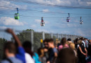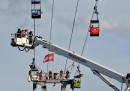 Ieri pomeriggio, domenica 30 luglio, più di 70 persone sono rimaste bloccate sulla funivia che passa sopra il Reno a Colonia, dopo che una cabina è andata a sbattere contro un pilone. Non si sanno ancora le cause dell’incidente, ma pare che ieri ci fosse molto vento. Un uomo e una donna incinta sono stati lievemente feriti e i vigili del fuoco hanno soccorso le persone facendole calare dalle cabine – anche a 40 metri di altezza – con corde e carrucole o autogru.