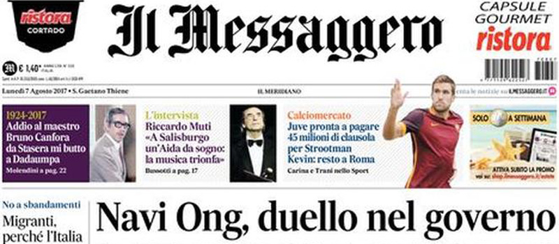 Le prime pagine di lunedì 7 agosto 2017