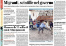 La maggior parte dei giornali di oggi si occupa ancora in apertura dell’accoglienza dei migranti e del codice di condotta per le organizzazioni non governative che operano nel Mediterraneo, sul quale sembrerebbero emergere divisioni all’interno del governo. Il Giornale e Libero si occupano del futuro del centrodestra, il primo con un’intervista a Silvio Berlusconi, il secondo sull’ipotesi di accordo con Alfano per le elezioni regionali in Sicilia, mentre Repubblica apre sulle multe decise dalla CONSOB per la vicenda di Banca Etruria.