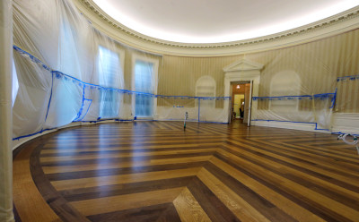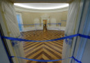 In questi giorni lo Studio Ovale, l’ufficio del presidente degli Stati Uniti alla Casa Bianca di Washington D.C., è in fase di rinnovo: è stato svuotato, le sue pareti sono state coperte con dei teli, e verrà riempito con nuovi mobili. È normale che quando si insedia, o qualche mese dopo, un nuovo presidente arredi come preferisce il suo ufficio: Donald Trump aveva già cambiato delle cose, tipo le tende, e non si sa ancora in cosa consisterà il nuovo arredamento. I funzionari della Casa Bianca che lavorano nelle immediate vicinanze dello Studio Ovale si sono spostati in questi giorni all’Old Executive Office Building, dall’altra parte della strada, mentre Trump è a Bedminster, in New Jersey, dove possiede un campo da golf e un resort.