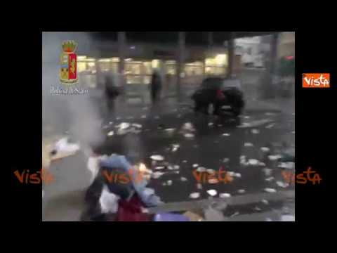 In alcuni video girati dalla polizia si vedono i rifugiati lanciare oggetti e rispondere alla carica della polizia, alcuni utilizzando dei bastoni, prima di venire dispersi. In una parte del video si vede anche uno dei rifugiati lanciare una bombola di gas, che appare vuota, nella strada sottostante, dove in quel momento non si trovava nessuno.