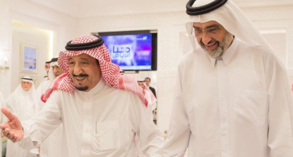 Il re saudita Salman (a sinistra) e il qatariota Abdullah al Thani (Saudi Gazette)