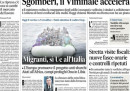 Le notizie sui migranti sono in apertura sulla maggior parte dei quotidiani di oggi: il vertice di Parigi fra i leader europei di Francia, Germania, Italia e Spagna e quelli di Libia, Ciad e Niger per discutere nuove iniziative per bloccare gli sbarchi in Italia, e gli sgomberi degli edifici occupati dopo gli incidenti della settimana scorsa durante l’azione della polizia per liberare un palazzo a Roma, con l’ipotesi di destinare i beni confiscati ai mafiosi per accogliere gli sfollati. La Stampa apre sulle proteste dei professori universitari in molti atenei contro il blocco degli scatti salariali, mentre altre notizie presenti su molte prime pagine sono le conseguenze dell’arrivo in Texas dell’uragano Harvey e i risultati della domenica sportiva, con le vittorie di Milan e Napoli in apertura sui giornali sportivi e quelle di Dovizioso nella MotoGP e di Hamilton in Formula 1.