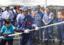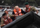 Politici rientrati dalle vacanze: il presidente francese Emmanuel Macron con il suo cane Nemo e Shinzo Abe in versione pompiere. Boris Johnson invece sembra divertirsi parecchio alla guida di un gommone: quelli a bordo con lui un po’ meno.