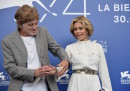 Venerdì al festival del cinema di Venezia è stato il giorno di Jane Fonda e Robert Redford, che hanno ricevuto il Leone d’Oro alla carriera: dopo la cerimonia di premiazione c’è stata la prima mondiale del film fuori concorso Le nostre anime di notte di Netflix, diretto da Ritesh Batra e in cui recitano entrambi nella parte di due vedovi vicini di casa che si conoscono superficialmente, fino a quando lei propone a lui di dormire insieme per farsi compagnia.