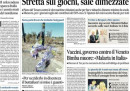 Molti giornali dedicano l’apertura alla morte di malaria di una bambina di quattro anni di Trento, mentre si indaga per capire quale possa essere stata la fonte del contagio. Altri si occupano della decisione del presidente degli Stati Uniti Trump di revocare il programma conosciuto come “Dreamers”, istituito dall’amministrazione Obama a favore degli immigrati irregolari arrivati nel paese da bambini, il Corriere della Sera segue invece le reazioni alla decisione della regione Veneto di rinviare al 2019 l’applicazione della legge sull’obbligatorietà dei vaccini per l’iscrizione a scuola, e il Messaggero apre sul piano del ministero del Tesoro per la riduzione delle slot machine. I quotidiani sportivi titolano sulla vittoria per 1-0 dell’Italia contro Israele in una partita per le qualificazioni ai Mondiali di calcio in Russia.