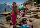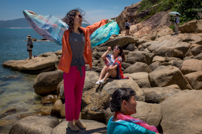 Negli ultimi anni il Vietnam è diventato una delle mete preferite dai turisti cinesi: l’anno scorso sono stati 2,7 milioni e la Cina è diventato il posto di provenienza della maggior parte delle persone che hanno visitato il paese. Oltre a molti vantaggi, questo fenomeno ha causato anche dei problemi, come il numero insufficiente di persone che parlano cinese e alcuni comportamenti fastidiosi dei turisti, come l’eccessivo chiasso e l’abitudine di sputare per strada. I giornali locali parlano anche dell’uso illegale di yuan, la moneta cinese, nei mercati locali, o di guide e agenzie cinesi senza autorizzazioni che accompagnano i turisti e forniscono informazioni false sul paese: per esempio che sia di fatto dipendente dalla Cina e che ci siano luoghi che le appartengono realmente, come la spiaggia bianca di Da Nang, soprannominata dai soldati statunitensi durante la guerra “spiaggia della Cina”. Non c’è dubbio però che le foto delle vacanze dei turisti cinesi siano particolarmente riuscite, come mostra il progetto realizzato dal fotografo vietnamita Linh Pham: in posa sugli scogli, in acqua sui gonfiabili, in file compatte o disarticolate alla cassa e ai buffet, tra costumi colorati, ombrellini, parchi divertimenti e molta goffaggine.