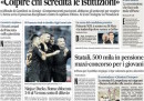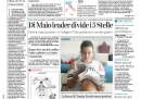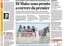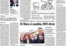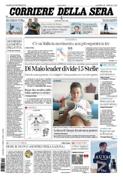 I quotidiani di oggi scelgono di aprire quasi tutti con notizie diverse: il Corriere della Sera con la candidatura di Luigi Di Maio a leader del Movimento 5 Stelle, Repubblica con gli ultimi dati sui morti sul lavoro e la Stampa con un’inchiesta sui conti di Coop. Alcuni hanno scelto di insistere con i propri cavalli di battaglia: il Fatto Quotidiano con l’inchiesta CONSIP, il Giornale con un’analisi sulla magistratura politicizzata. Sui giornali sportivi trova spazio la quarta giornata di Serie A di calcio.
