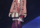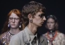 È iniziata ieri la Settimana della moda di Milano, in cui le più importanti aziende italiane presentano le collezioni per la primavera/estate 2018. La settimana della moda è stata aperta dalla sfilata di Alessandro Michele, direttore creativo di Gucci: è lo stilista del momento non solo in Italia, ma in tutto il mondo, quello che fa parlare più di sé, che ingombra i social network con le foto e video dei suoi vestiti e accessori stravaganti, quello più atteso e che farà più tendenza, circondato da una corte ormai abituale di celebrità e influencer. È così da quando Michele è arrivato alla direzione di Gucci, nel gennaio 2015: tralasciando i particolari – come i riferimenti pop e il tema principale di ogni singola collezione – le sue sfilate si possono descrivere e commentare sempre con le stesse parole. Il suo successo sta infatti nell’aver creato un’estetica originale e personale servendosi sempre della stessa ricetta: l’abbinamento imprevedibile di stili completamente diversi tra loro, ispirati a epoche, luoghi, civiltà lontanissime, che Michele mescola con gusto raffinato e sempre sul filo dell’accozzaglia confusionaria. È andata così anche con questa collezione e anche questa volta, scrive Tim Blanks su Business of Fashion, ha funzionato.