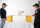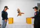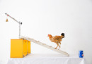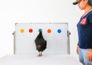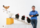 Zhang Huating è un’insegnante del dipartimento di zootecnia ed economia dell’Università di Henan, in Cina. Cinque anni fa ha acquistato cinque galline in un supermercato e le ha addestrate. Ora gli animali sono in grado di compiere una serie di azioni a comando: per esempio possono riconoscere una certa banconota in mezzo ad altre così come un colore preciso o una bandiera, fare lo slalom tra i coni e camminare in equilibrio su delle travi. Le galline di Huating hanno mostrato le loro abilità in una specie di servizio fotografico per Associated Press.