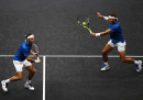 L”occasione per giocare insieme è stata la Laver Cup, la prima edizione di un torneo amichevole che diventerà annuale. È intitolato all’ex tennista australiano Rod Laver e si è giocato a Praga, in Repubblica Ceca. Ha più o meno la stessa struttura della Ryder Cup di golf: si sfidano infatti due squadre, una di tennisti europei, un’altra di tennisti dal resto del mondo. In tutto sono previsti 12 incontro in tre giorni, nove nel singolare e tre nel doppio. Quello con Federer e Nadal era ovviamente il più atteso, ed è stato il più fotografato. Hanno vinto Federer e Nadal: è finita 6-4, 1-6, 10-5.