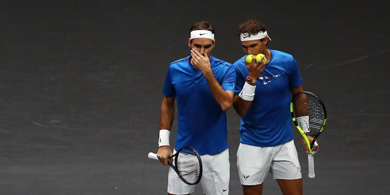 ieri il tennista svizzero Roger Federer e lo spagnolo Rafael Nadal hanno giocato insieme una partita di doppio contro gli statunitensi Sam Querrey e Jack Sock. È la prima volta nella loro carriera che si trovano dalla stessa parte della rete, ed è stato notevole vederli giocare insieme. Nadal e Federer sono i due più forti tennisti degli ultimi anni, e sono al momento primo e secondo nel ranking ATP: sono rivali e amici da molti anni e hanno vinto in tutto 35 tornei del Grande Slam.